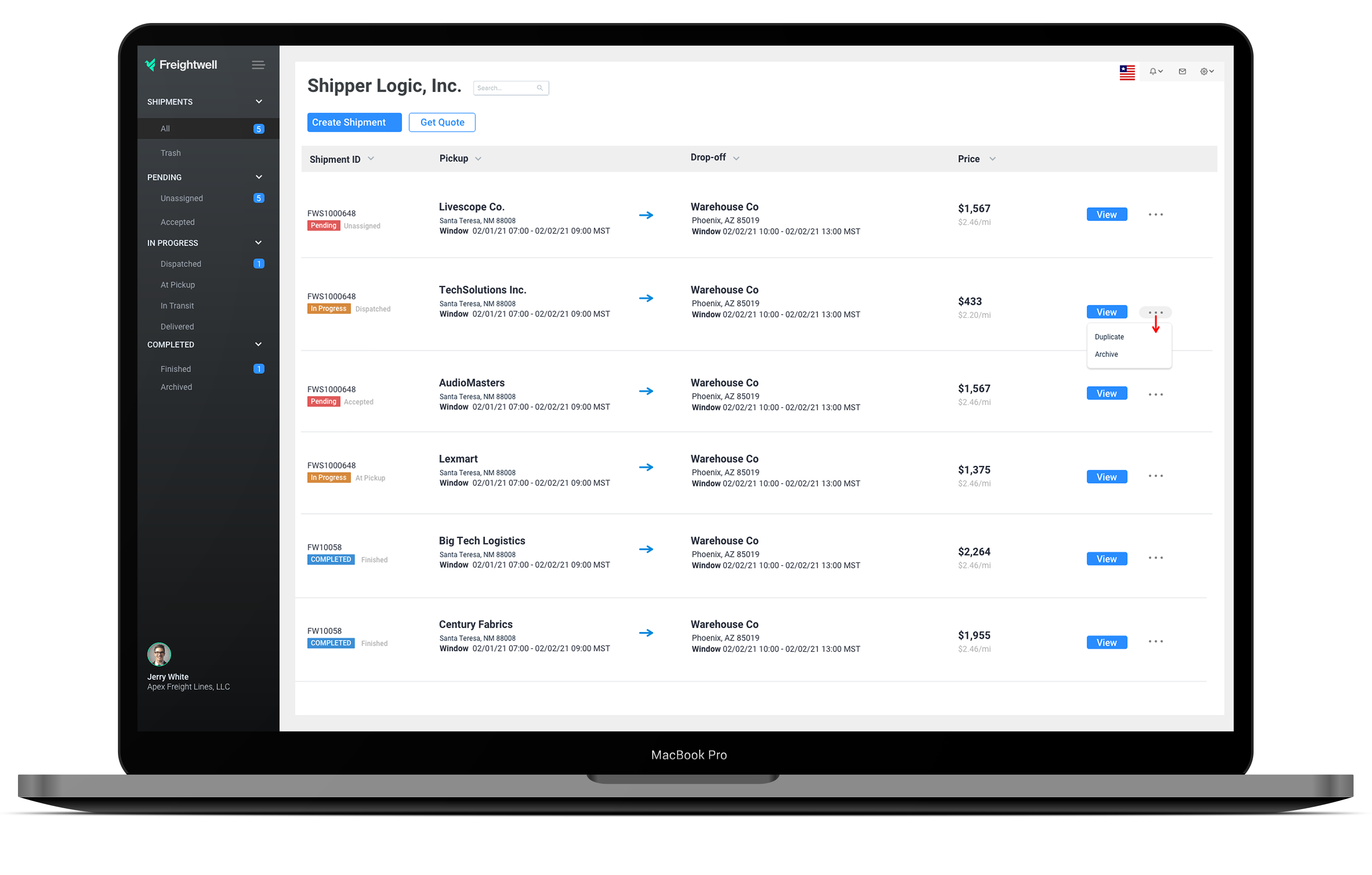 Balance capacity, rate fluctuations and service more efficiently by leveraging our centralized marketplace. We've built relationships with hundreds of vetted carriers and owner operators. This means we can move your freight anytime or anywhere.